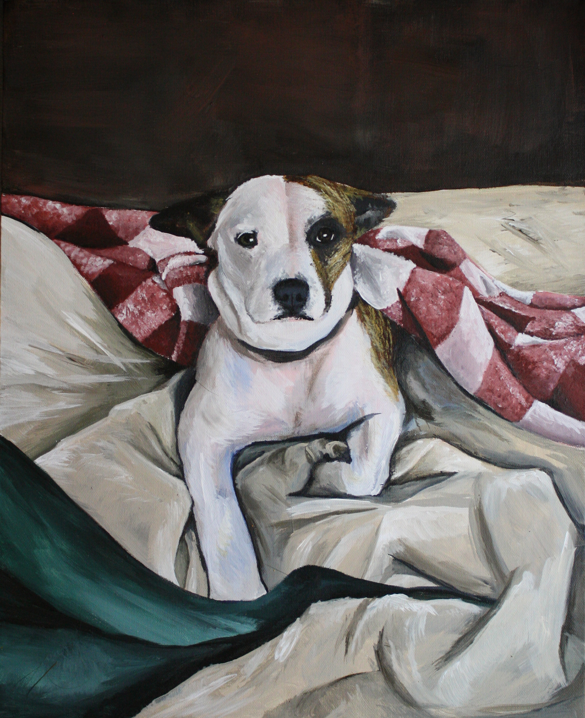 Haley in Sheets, acrylic paint on 16x20 canvas, 4/9/20, completed in 4 days.